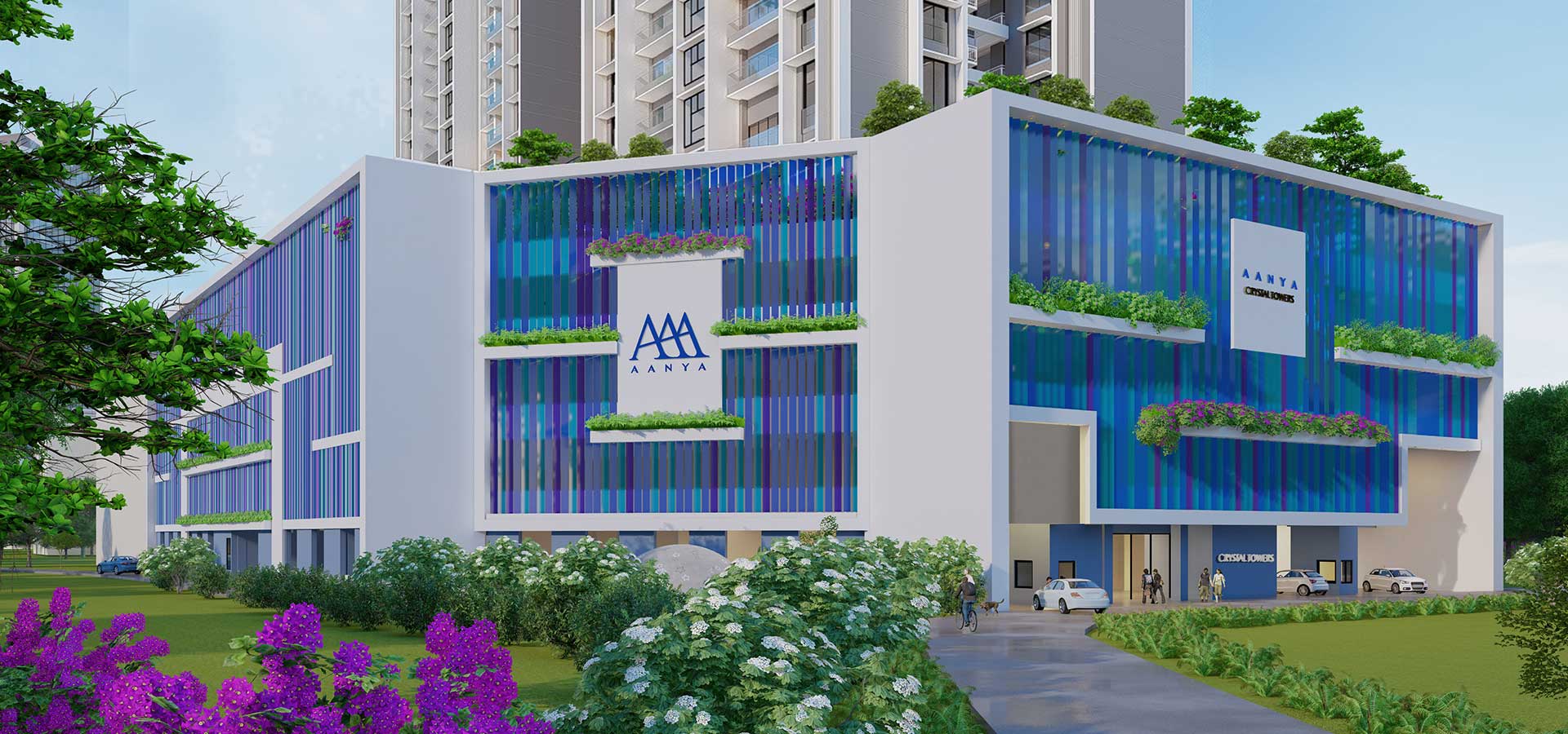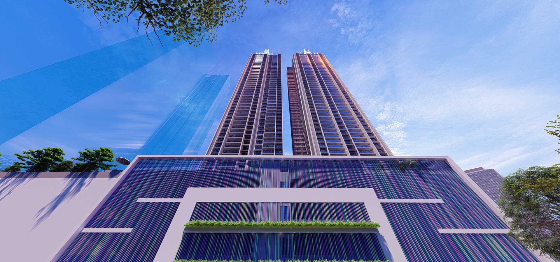 Crystal Antras is envisioned as a luxury residential retreat in Thane's Manpada Junction. The project is a high-rise settlement with two 48-storey tall towers and four levels of podiums for social amenities and parking.